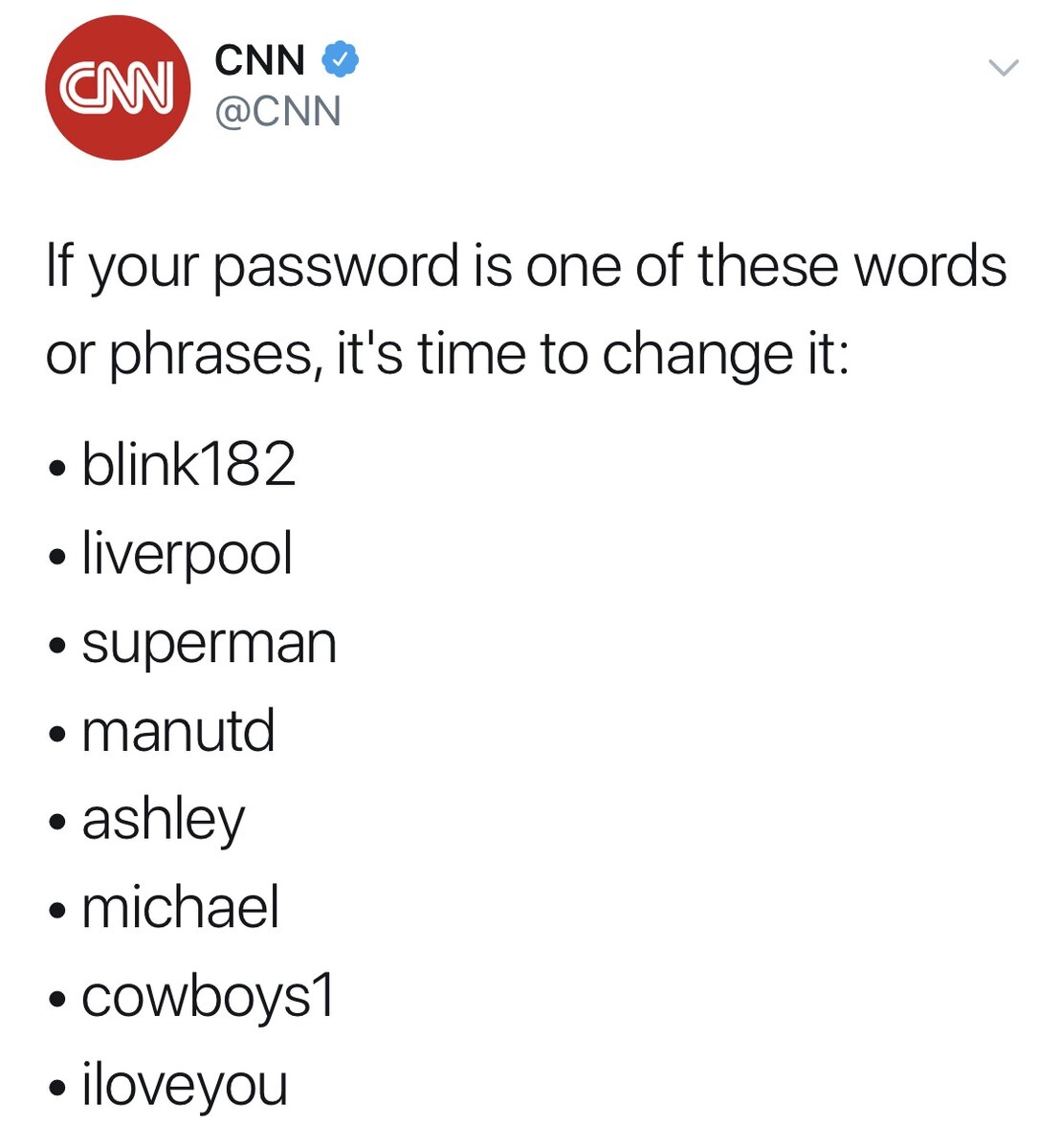 Насколько ваш пароль надежен? Национальный центр кибербезопасности Великобритании (NCSC) проанализировал взломанные пароли со всего мира и выяснил, что "Superman" часто не справляется с защитой данных. Действительно, "superman" — наиболее популярный выдуманный персонаж, а среди названий музыкальных групп первенство одерживает Blink182. «12345» использует 23,2 миллиона аккаунтов, «123456789» — 7.7 миллионов, а qwerty и password использует в среднем 3 миллиона аккаунтов. Интересно, что "iloveyou" теряет популярность, а "dragon" вырывается вперед (похоже на описание 8 сезона Игры престолов). В общем, NCSC рекомендует использовать рандомное сочетание трех уникальных слов, так ваш пароль будет безопасным и уникальным. SmartPrice — делаем топовые гаджеты доступными каждому и рассказываем, как использовать устройства на 100%.