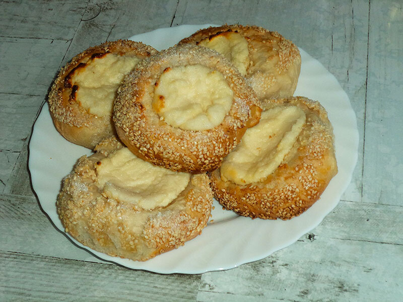 Способ приготовления таких булочек я подглядела в одной из социальных сетей. И решила проверить на деле, что получается в результате – булочки с кунжутом или ватрушки с творогом. Время приготовления – 60 минут Количество порций – 2 Ингредиенты Способ приготовления 1. Тесто делим на 5 частей. Формируем шарики, закрывая их снизу. Именно за этот хвостик мы будет брать тесто, когда будем окунать теста во взбитый желток. 2. А вот и сам процесс — сначала во взбитый желток, а затем в кунжут. 3. Вот такие шарики у нас должны получиться. Их накрываем пищевой пленкой и оставляем на 20-30 минут для поднятия. 4. Когда тесто подойдет, берем стакан и делаем углубления для начинки. 5. В качестве начинки будем использовать смесь из сахара, творога и ванилина. 6. Начинку стараемся распределять равномерно. По желанию булочки сверху присыпаем сахаром. 7. Выпекаем булочки при температуре 200 градусов в течение 25 минут. 8. Булочки готовы. И каков результат? Это что-то среднее между классической ватрушкой