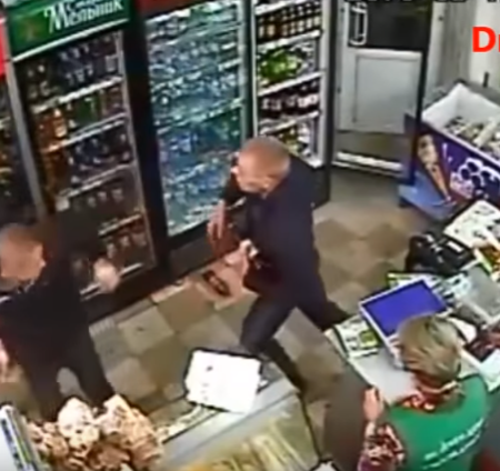 Детали событий на видео Вечер, люди возвращаются с работы и по пути заходят в магазин, в этот момент входят двое пьяных людей, один из них отталкивает молодого человека у кассы и подходит к продавцу с требование продать пиво. При этом чуть не роняет с весы со стола. Продавщица делает ему замечание, но пьяный человек заявляет, что ничего не трогал. Второй достает пиво из холодильника и подносит на кассу, первый в тот момент подает купюру и просит быстрее его рассчитать. Продавщица отказывается принять деньги, по всей видимости, они были испорчены и взяв в руки бутылки - уносит в подсобку. В тот момент, первый пытается пройти за прилавок, с какой целью - неясно. Охранник заметив это, хватает за куртку пьяного человека и пытается вытащить из-за прилавка, это провоцирует драку. Друг-собутыльник старается разнять и на некоторое время, ему это удается, но далее обороты начали нарастать. Самый буйный, вырвал дверь холодильника и начал доставать еще партию пива, в этот момент покупатели снова