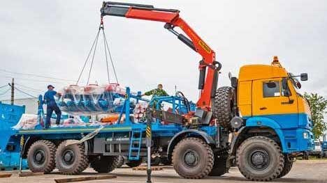 Манифольдовоз с грузовой платформой длиной 7 метров – более универсальная машина на том же шасси КАМАЗ‑6560. Ее основная функция – доставка на кустовые площадки нефтепромыслов блоков манифольдов – многотонных конструкций из толстостенных насосно-компрессорных труб, вентилей, задвижек и прочей арматуры. Для разгрузки и сборки этого оборудования не обойтись без крана-манипулятора. На «Левше» применили 6,8-тонный Palfinger PK 30002-K со стрелой длиной 12,6 метра. Кстати, всем перевозчикам, выбирающим вездеход с манипулятором, стоит призадуматься о шасси 8х8. Оно подойдет гораздо лучше, чем 6х6. Ведь когда у вас за кабиной закреплена установка тонны три весом, то дополнительная пара ведущих колес, подпирающая передок, кардинально улучшает проходимость машины на раскисшей грунтовке.