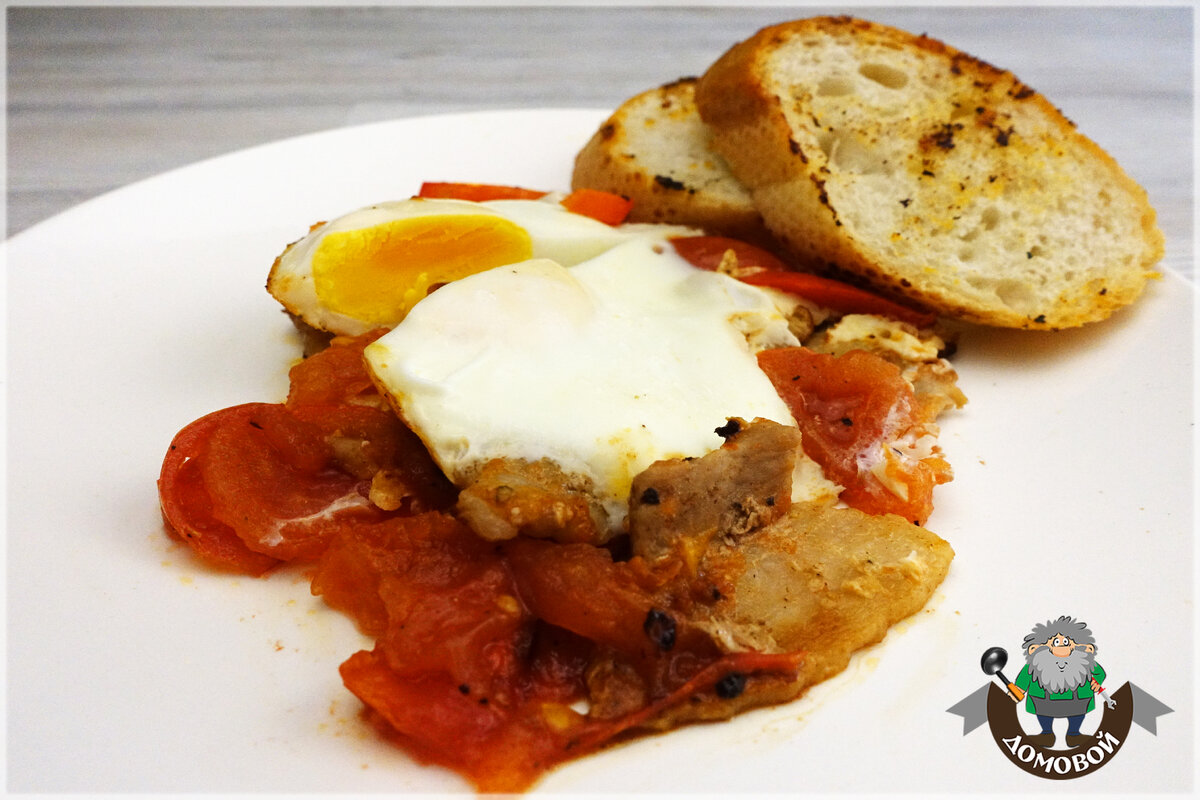 Всем привет✌ Мы не устанем говорить о важности завтрака. От того, как пройдет наше утро зависит весь наш день. Поэтому рекомендуем выделять хотя бы 10-15 минут на приготовление вкусного завтрака. Делимся с вами рецептом нашей любимой яичницы. Она очень вкусная, полезная и ароматная. Готовится такой завтрак просто, насыщает надолго и поднимет настроение! Начинайте утро правильно) Вы можете ознакомиться с рецептом, посмотрев наше короткое видео в конце статьи👇 Для приготовления нам понадобится: Пошаговый рецепт Шаг №1 Бекон нарезаем на небольшие кусочки. Перец и помидор нарезаем полукольцами. Шаг №2 На разогретую сковороду выкладываем равномерно бекон, солим и перчим по вкусу. Бекон обжариваем с двух сторон до золотистого цвета и с обеих сторон солим и перчим. Когда бекон поджарится, добавляем перец и помидор. Перемешиваем и обжариваем вместе 2 минуты. На обжаренные овощи с беконом разбиваем яйца. Немного подсаливаем. Накрываем крышкой, убавляем огонь до среднего и оставляем до гото
