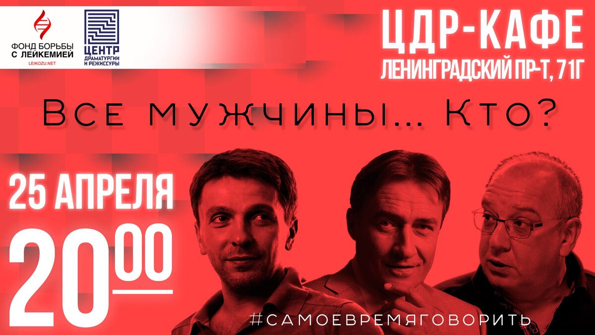 Ищем место мужчины на новой гендерной карте 25 апреля в 20.00 в ЦДР-кафе на Соколе состоится второй круглый стол из цикла #самоевремяговорить. В этот раз в центре обсуждения — мужчины и их место в современном контексте. Специальные гости: - актеры Леонид Барац и Камиль Ларин из московского театра "Квартет И" - музыкальный продюсер Дмитрий Гройсман (группы ЧАЙФ/CHAIF, ПилОт и др.) - продюсер, основатель продакшена стратосфера Василий Сонькин (Vasily Sonkin) - театральный критик Антон Хитров - дизайнер-стилист Нестор Ротсен (Nestor Rotsen) Модератор дискусcии: психолог Григорий Крамской (Grigory Kramskoy). Фонд Борьбы с Лейкемией помогает взрослым больным раком крови, и потому мы просто обязаны говорить на взрослые темы. Попробуем разобраться: чем живут мужчины, что они чувствуют, как реагируют на смену гендерной парадигмы. Работают ли ещё привычные образы мужественности и мужской состоятельности или пришла пора что-то менять? Глубока ли пропасть между зрелыми