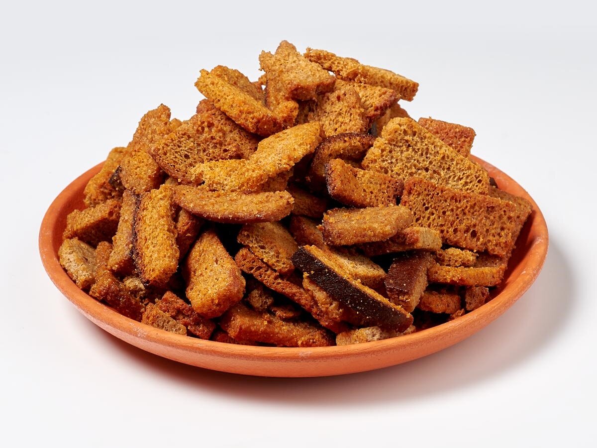 Сухарики пользуются огромной популярностью как закуска к пиву, так и самостоятельная закуска . Даже несмотря на возгласы диетологов о их вреде на организм человека это мало кого останавливает, ее все также продолжают употреблять к пиву, как быстрый перекус и как ингредиент для салатов. Но какова же технология производства сухариков?Сухари бывают различных видов, отличающиеся размерами, формой вкусовыми качествами, пищевой ценностью и сроками сохранности. Производство сухариков Сухарей существует огромное множество. Отличаются они размерами, формой (гренки, кубики, классическая соломка), сортом хлеба (пшеничные, ржаные, пшенично-ржаные) и вкусом. Но все они имеют одну технологию производства. Первым делом хлеб, закупленный заранее у хлебозавода, нарезается кубиками, соломкой или гренками нужного размера. Нарезанный хлеб отправляется в специальные духовки на сушку. Сушится хлеб 15-20 минут при температуре 190-200°С. Затем уже высушенный хлеб движется дальше по конвейеру и смазывает