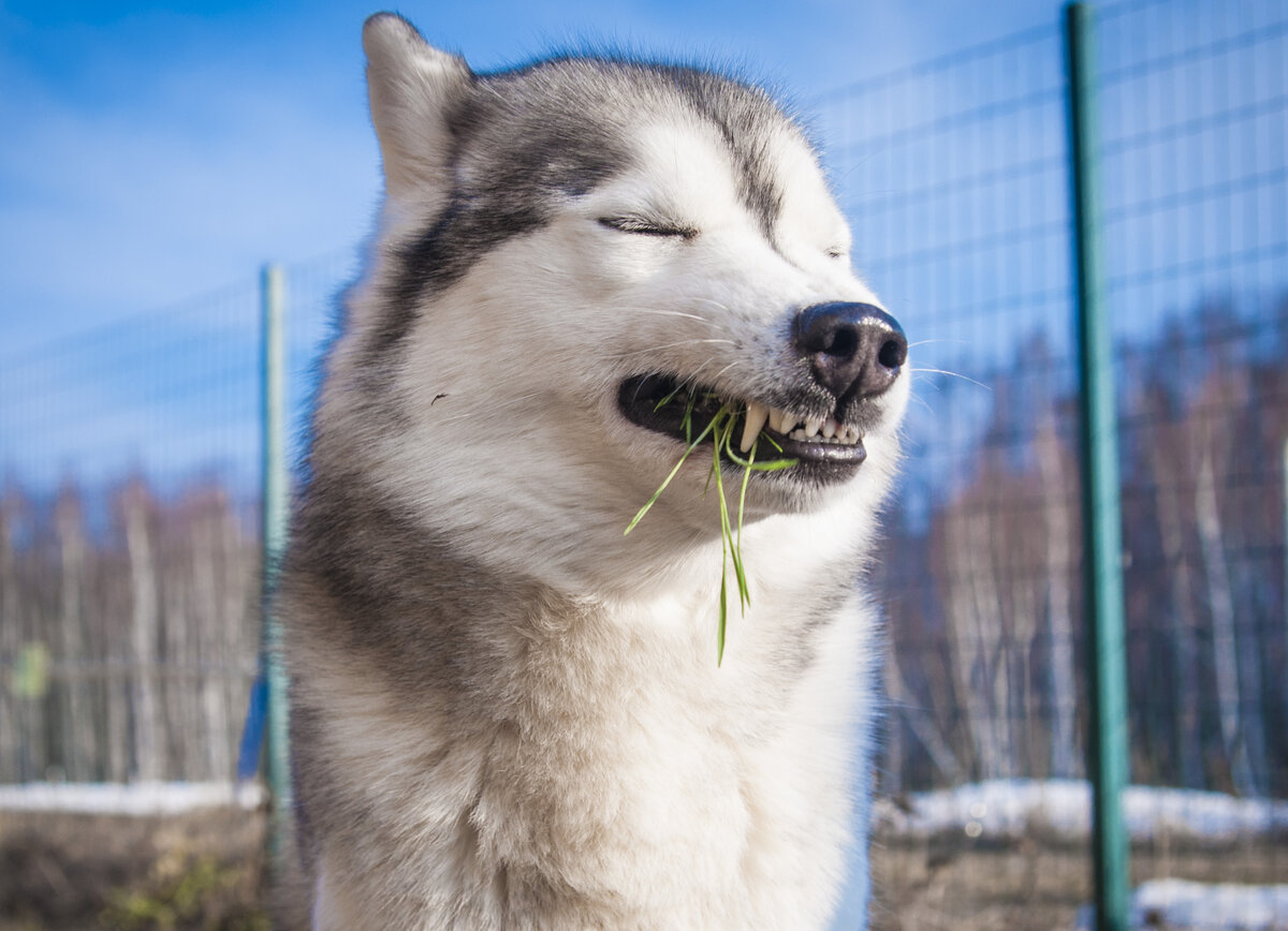Я ведь говорила, что хаски - они как кошки. Вот и от свежей травы сходят с ума точно так же. Выращивать пшеницу весной мы начинаем килограммами: зелень даем курицам, кошкам и, конечно же - собакам. Попробуй пройти мимо с пучком травки и не дать - будет обида часа на два точно.