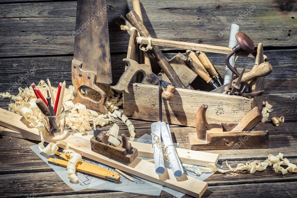 Здравствуйте, сегодня я хотел бы вам показать и рассказать о своей столярной мастерской, которая организованна в обычном гараже. Я покажу какие станки установлены на такой маленькой площади, и как этого всего хватает для полноценного функционирования. Площадь помещения примерно 25-30 кв.м. По центру установлен фуганок с циркулярной. Это самое массивное в цеху. Он установлен в центре помещения. Вокруг данного станка расположились всё остальное. Оставшуюся площадь мы разделили на рабочии зоны с отдельной группой станков. Так, например, есть зона шлифовки, где установлены два самодельных станка с плоским и круглым барабаном, которые очень облегчают шлифования заготовок. На против этих станков располагается зона сверления, пиления и токарная зона. Сверлильный и токарный станок времён СССР, но со своей работаю справляются на все 100%. Между ними находиться торцовочник Makita. Данная модель не имеет возможности выдвижения, для пропила досок шириной более 14 см, но на ней есть площадка
