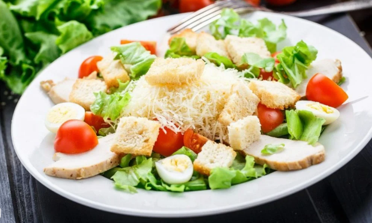 Среди нас много любителей этого салата. Одно время он был очень популярен, но и сейчас многие хотят приготовить такой салат дома. Для Вас мы представляем быстрый рецепт салата "Цезарь". Ингредиенты: Сыр твердый - 200 грамм Сухари - 100 грамм Помидоры чери - 2-3 шт. Куриное филе - 1 шт. Капуста пекинская - 3-4 листа Для соуса: Лимон - 1 шт. Чеснок - 3 зубчика Майонез Зелень Как приготовить салат "Цезарь" на скорую руку Для начала варим курицу, после того как она остынет разрезаем ее на мелкие кусочки. Режем помидоры на дольки, трем на терке сыр и режем капусту полосками. Теперь займемся соусом. В блендере измельчаем чеснок, зелень и перемешиваем с майонезом. Добавляем к ним несколько капель лимонного сока и перемешиваем до однородной массы. Вот в принципе и все салат готов. Рекомендуется не заправлять сразу весь салат соусом. Его подают отдельно и каждый сам добавит соуса сколько захочет. Приятного аппетита! Если вам понравился наш рецепт, ставьте лайк и подписывайтесь на наш канал, у н