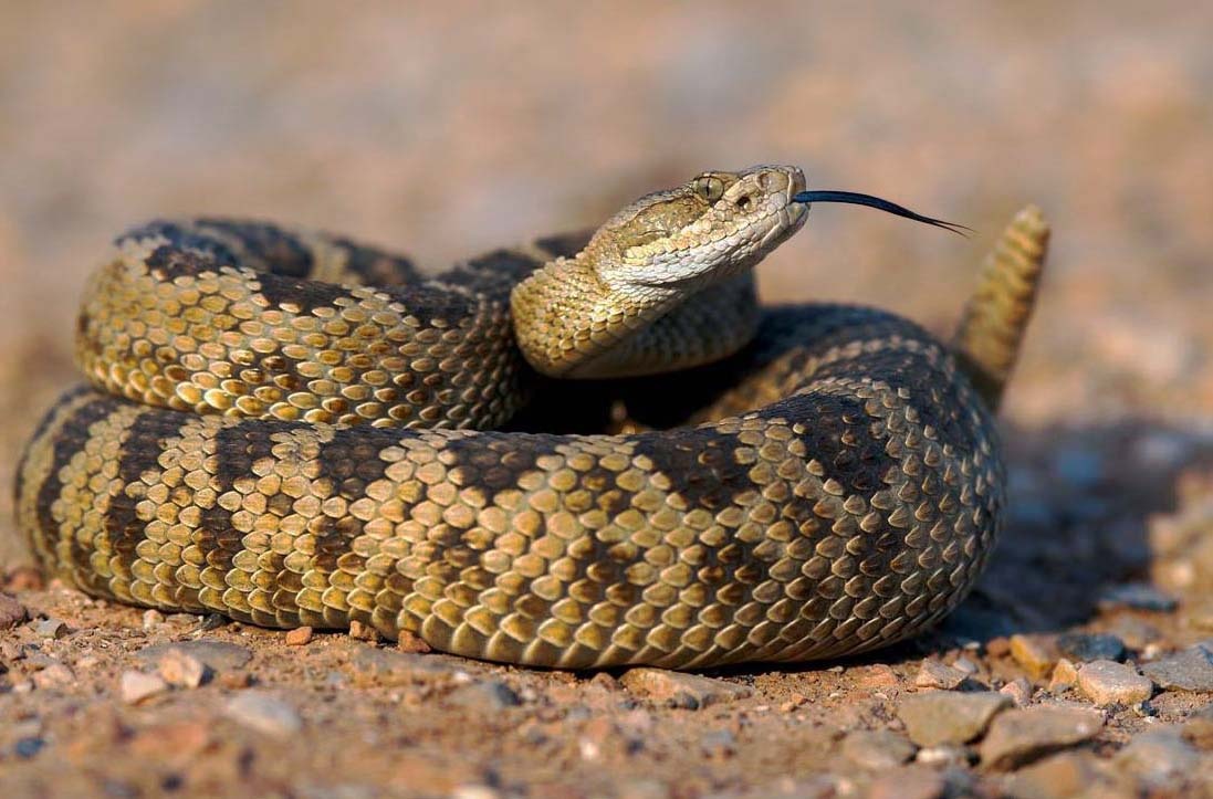 В сумерках и ночью гремучник охотиться на грызунов и птиц. Поджидая добычу, змея затаивается у тропы. Когда жертва оказывается достаточно близко, гремучник ощущает её с помощью специального органа, расположенного по бокам головы. Даже в полной темноте хищник уверенно находит теплокровную цель и мгновенно убивает её, свои парализующим ядом. Но как быть, если жертвой становится сама змея? Поможет ли яд? Полые длинные ядовитые зубы на самом деле очень хрупкие, поэтому змеи оберегают своё коварное орудие. Обороняясь против крупного животного или человека, зубы могут сломаться, в результате чего хищник скорее всего погибнет в дальнейшем от голода, если спасёт конечно. Поэтому змеи не спешат использовать свой яд, а вырабатывают специальные формы отпугивания и "предупреждения", для тех с кем сражение змее не выгодно. Типичным примером данной формы запугивания выступает хвост гремучки, который вибрируя при опасности издаёт неприятный звук. Однако это во все не значит, что стоит испытывать судь