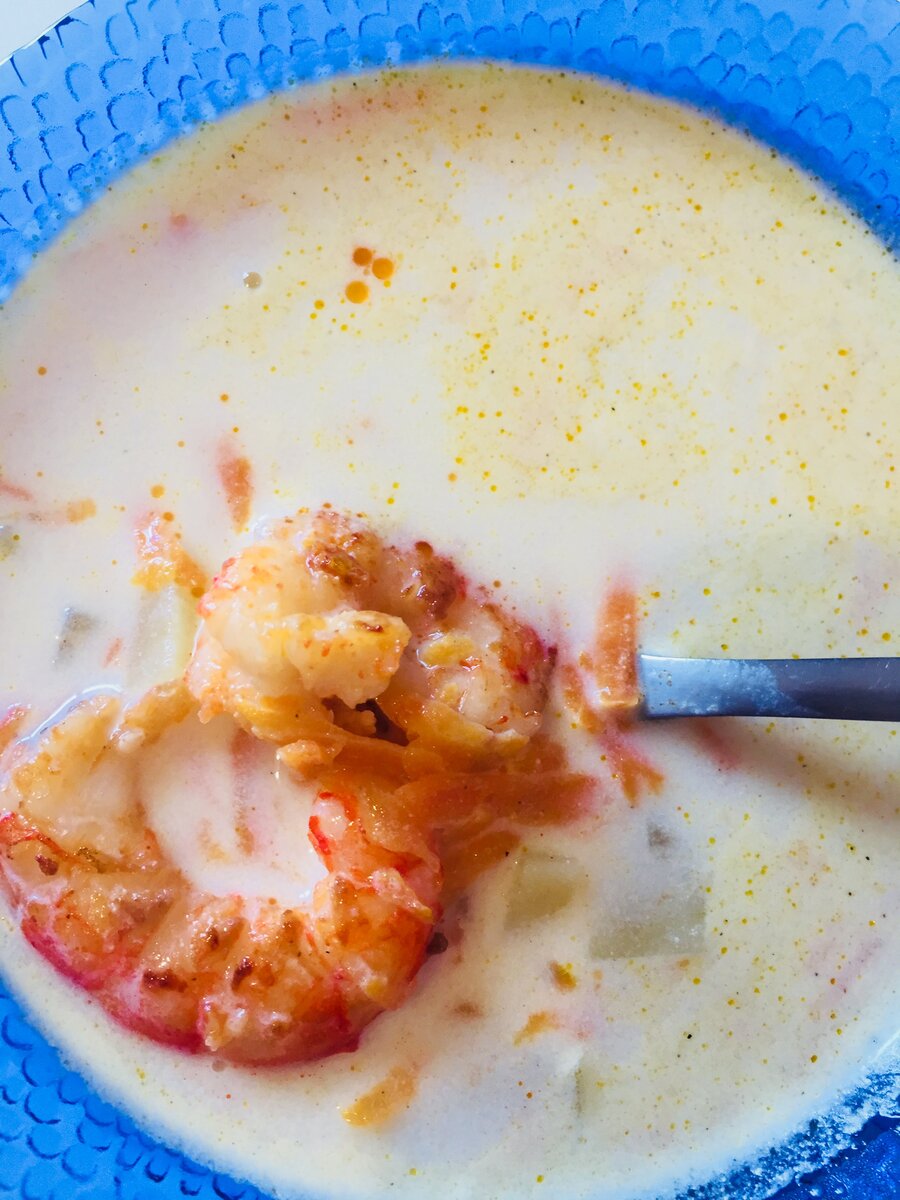 Нежнейший сливочный суп в японском стиле с лангустинами