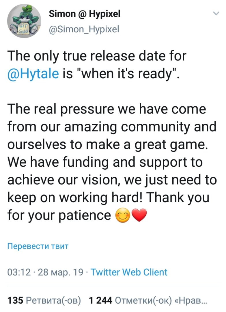Вот такое название блога я увидил просматривая сайты для поиска информации к новому посту. В блоге говорилось ,что дата выхода игры - 15 июня. К сожалению я должен вас огорчить - точной даты выхода игры нет. разработчик игры уже писал, что игра выйдет тогда когда будет готова Единственная настоящая дата выпуска #Hytale - когда игра будет готова Не верьте ,если вы видите надпись :"точная дата игры хайтейл ..." .Это всего лишь слухи и предположения.