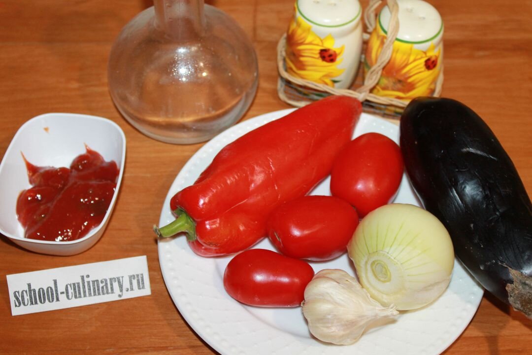 Рагу из баклажанов открывает новые горизонты в домашней кулинарии. За счет нейтральности главного героя в блюдо можно добавлять любимые овощи и даже фрукты. Очень вкусно получается, если скомбинировать баклажанчики с яблоками и морковью с луком. Но сегодня в составе блюда будет паприка, томаты, лучок и чесночок. Простой состав и понятная процедура приготовления сделают рагу популярным в категории быстрых рецептов. Ингредиенты: Приготовление Паприку, баклажаны, томаты моем. Луковицу и чесночные зубчики очищаем и ополаскиваем. Как уже упоминалось, набор овощей может быть любым, так как с баклажанами хорошо сочетаются все овощи. Выбираем, ориентируясь на свои предпочтения и ассортимент холодильника. Лук режем так, как нравится. Могут быть кольца, полукольца или кусочки. В сковородку наливаем подсолнечное масло, кладем лучок и жарим его до прозрачности 4-7 минут. Все овощи режем кубиками средней величины. С томатов можно снять кожицу, а баклажаны замочит в соленой воде на 20 минут. Но эт