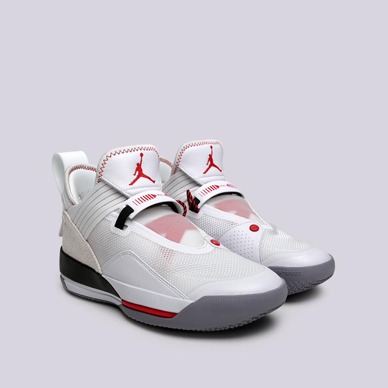 Рассмотрим очередную новинку от Jordan, это баскетбольные кроссовки Air Jordan 33. Баскетбольная модель кроссовок от бренда Jordan — 33 Future of Flight. Это 33 номерная модель от короля воздуха Майкла Джордана . Как и предвиделось эта модель будет отличаться от предыдущих и дизайном и технологиями. Верх кроссовка выполнен из текстиля, что значительно снижает его вес. Также заметна и дополнительная защита голеностопного сустава. Но главной инновацией стала система инновационной шнуровки FastFit, которая надежно фиксирует стопу за счёт четырёх петель, уходящих в основание кроссовок.
