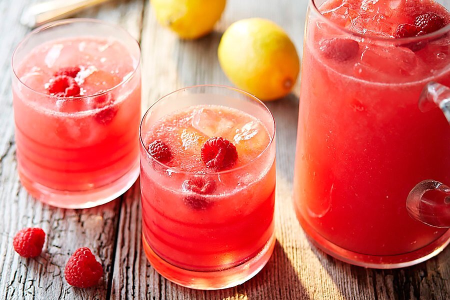 Чем удивить гостей, перед тем как сесть за стол. Лучше всего начать с прохладительных напитков. В этой статье научимся готовить очень вкусные домашние лимонады. Разберем имбирно малиновый. Все что понадобиться это замороженная малина 300-400гр , корень имбиря, лимон , малиновый или сахарный сироп, сахар, минеральная вода с газом. Начнем делать премикс для лимонада, нужно сделать сахарный сироп. Берем 1кг сахара и 1 литр кипятка, смешиваем в кастрюле и ставим на плиту, нужно чтобы сахар полностью растворился в воде. Как только сироп начал кипеть , снимаем с плиты. Далее смешиваем в блендере замороженную малину и сахарный сироп, взбиваем пока малина полностью не превратится в пюре..Теперь нужно процедить наш премикс через сито в банку. Премикс готов и можно приступать к выжимке имбирного фреша через овощную соковыжималку. Имбирного фреша на 1 литр лимонада нам нужно 20мл..Поэтому выжимаем небольшой кусочек корня имбиря. Еще нужен лимонный сок 50 мл на 1 литр лимонада. Теперь осталось д