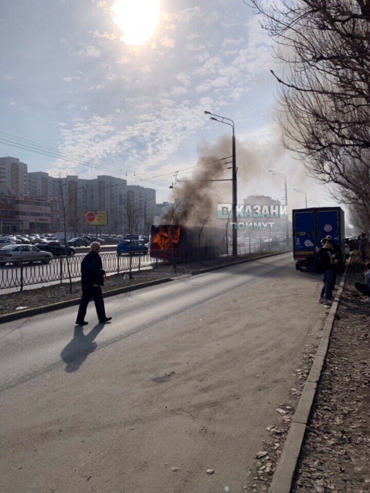 В Казани на проспекте Ямашева загорелся автобус. Видео выложили в интернет пользователи социальных сетей. Горел двигательный отсек на площади 10 кв.метров. Порядка 40 пассажиров и водитель вышли, пострадавших нет. Предварительная причина пожара — неисправность транспортных узлов и механизмов транспортного средства. Напомним, ранее в Казани загорелся трамвай. Тогда никто не пострадал.