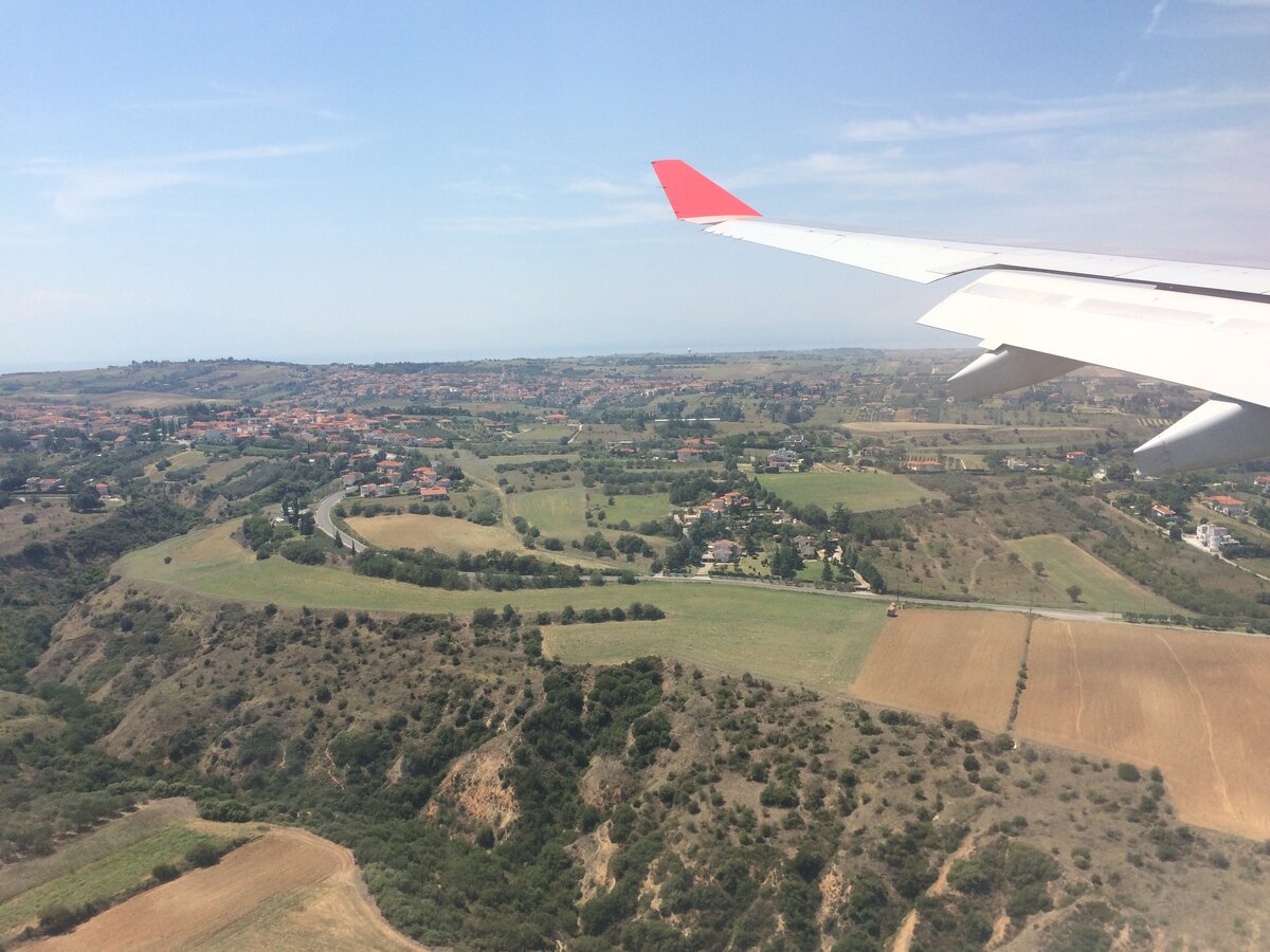 Нравится ли Вам сидеть в самолете у окна? Да, что, собственно, спрашивать. Большинству путешественников, да и просто пассажиров самолета, это очень нравится! А еще нравится делать снимки разных городов, полей, лесов и моря, которые видны под крылом самолета. На этот раз покажем Вам несколько снимков удивительной Греции, сделанных в ходе полета из Москвы в Салоники. Глядя из иллюминатора самолета на Грецию, лишний раз убеждаешься в том, что это сельскохозяйственная страна, где бурно растут оливковые сады и виноградники. Пролетая над Эгейским морем Яркие виды открываются на прибрежную линию залива Термаикос Аэропорт находится прямо недалеко от моря. В жаркую погоду так и хочется, покинув борт, пойти и искупаться Греция - удивительная страна, и наблюдая из окна самолета ее природные богатства, лишний раз убеждаешься в том, что еще несколько тысячелетий назад люди не случайно выбрали эту территорию для развития античной цивилизации.