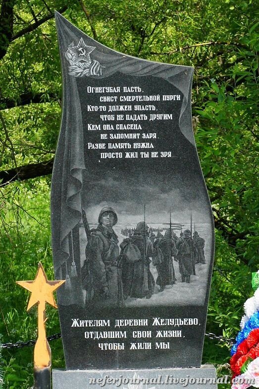 Ехали из Покрова в Киржач. По дороге попался вот такой мемориал. Это в поселке Желудьево Владимирской области.