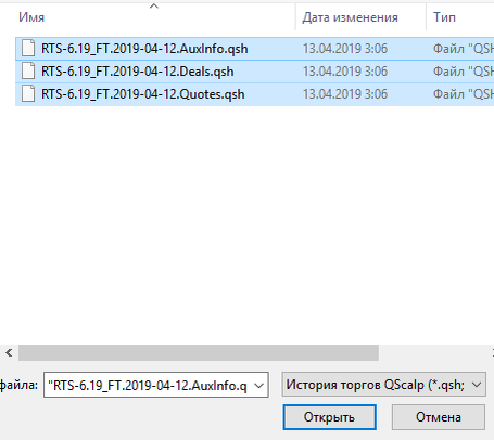 Если Вы интересуетесь скальпингом по стакану, но тренироваться не всегда есть время когда открыт рынок? К Вам на помощь придет привод QScalp. В нем имеется возможность воспроизведение реального записанного стакана за какой-либо день. И в нем же в режиме эмуляции можно выполнять заявки на продажу и покупку, а в журнале отслеживать результаты Ваших сделок. Не правда ли удобно? 1. Для начало Вам необходимо будет скачать QScalp с сайта https://www.qscalp.ru/download 2. Скачать записанный стакан, допустим RTS с сайта: http://qsh.qscalp.ru/scalping.pro/ Выбрав дату торгов, скачайте 3 файла: RTS-6.19_FT.2019-04-12.AuxInfo.qsh, RTS-6.19_FT.2019-04-12.Deals.qsh, RTS-6.19_FT.2019-04-12.Quotes.qsh 3. Запустите QScalp в меню выберите история торгов подпункт воспроизвести. Или просто нажав на F12. 4. Выберите все 3 файла 5. Если у Вас нет терминала, тогда выдаст предупреждение о отсутствии инструмента. Согласитесь с ним, что бы QScalp сам создал инструмент. 6. Нажмите запустить и торгуйте. Те