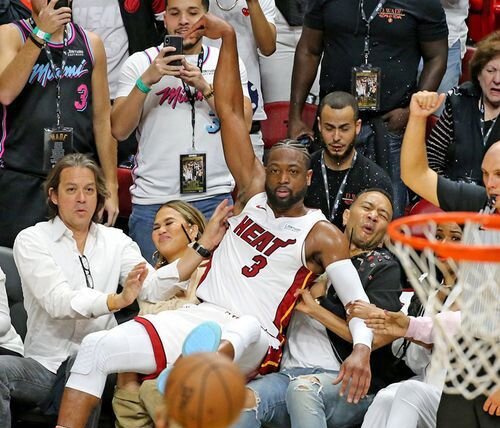 Баскетбольный матч, прошедший в Майами на этой неделе, запомнится Крисси Тейген и её супругу Джону Ледженду надолго. И не только им — ведь игру между командами «Филадельфия Севенти Сиксерс» и «Майами Хит» уже два дня активно обсуждают в социальных сетях. Главная причина оживлённой реакции интернет-пользователей заключается не в интересной игре, а в том, что во время матча муж актрисы Габриэль Юнион Дуэйн Уэйд упал на сидящих в первом ряду Крисси и Джона. Разумеется, очень скоро Twitter наводнили мемы и смешные сообщения. Баскетболист Дуэйн Уэйд может похвастаться впечатляющей фотогеничностью, которую уже поспешило оценить множество пользователей Twitter, Instagram и других площадок. А вот Крисси Тейген и Джону Ледженду повезло куда меньше, потому что игрок ростом 193 см упал прямо на них, когда пытался дотянуться до мяча.