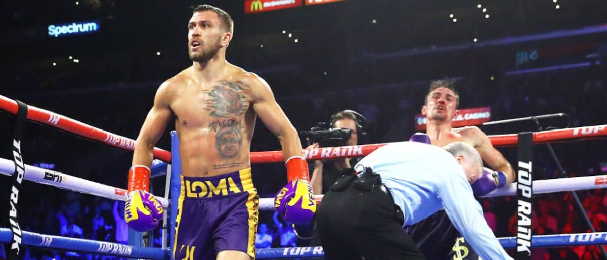 Василий Ломаченко эффектно защитил чемпионские пояса в легком весе (до 61,2 кг) по версиям WBA и WBO. Рано утром 13 апреля в Лос-Анджелесе (там еще был вечер пятницы,12 апреля) украинский чемпион добыл свою 10-ю победу нокаутом (13-ю всего из 14 поединков) на профессиональном ринге. Соперником Ломы стал 32-летний экс-чемпион WBA Энтони Кролла. Но интриги не получилось вовсе: показалось, что британец попал «не в свою лигу». Причем, показалось и ему самому. В первых двух раундах Вася присматривался к сопернику и почти не наносил ударов. Кролла же просто закрылся и не пытался даже контратаковать, лишь бегая из угла в угол. В 3-м раунде Васе это надоело, и в концовке он стал просто избивать соперника, прижавшегося к канатам. В какой-то момент судья остановил поединок, и все подумали, что рефери зафиксировал стоячий нокаут, так как Энтони вообще не защищался, хоть и не упал. Ломаченко уже начал праздновать, но рано – всего лишь нокдаун. А зря! Все могло закончиться хуже для здоровья британ