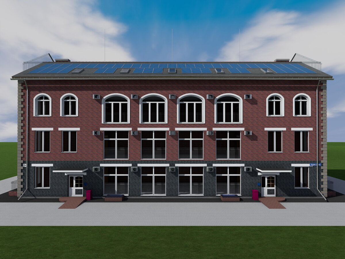 На крыше предлагается установить панели солнечных батарей, солнечный водонагреватель, антенны, молниезащиту.
