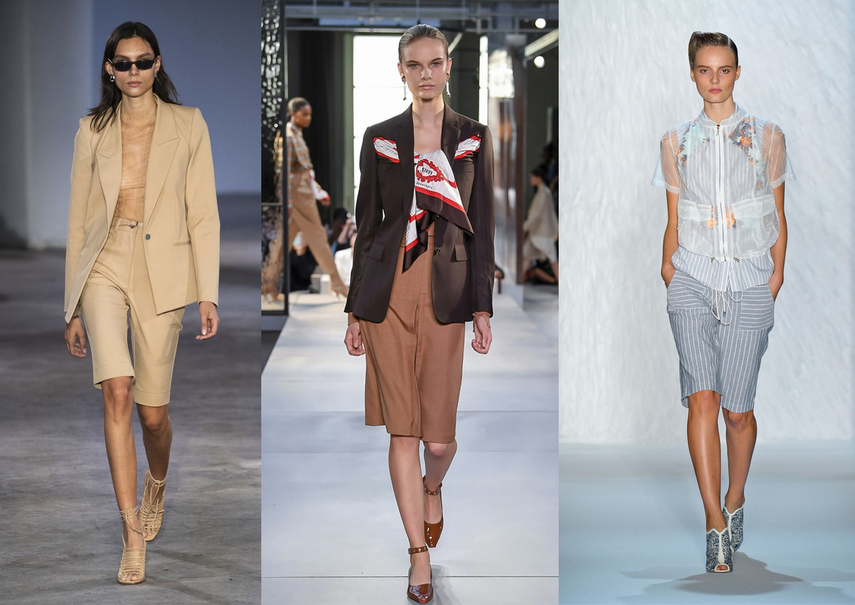 Продолжаем разглядывать подиумы 2019 . Что еще из предложенный трендов отлично подойдет взрослым женщинам 45+? В предыдущем обзоре я закончила на пятом тренде – кейпе. Продолжим? 6. Тренд номер шесть – Бермуды вернулись на подиумы. Я не была фанатом бермуд в нежном юном возрасте. Мне казалось, что они не для моих длинных стройных ножек. Уж брюки –так брюки, а шорты – так шорты. А вот сейчас обнаружила, что бермуды делают образ динамичным и при этом ты чувствуешь себя комфортно и уверенно. С пиджаком или удлиненным жилетом бермуды – отличный выбор и для офиса и для прогулок. 7. Плиссировка. Плиссировка - это из тех трендов, что всегда рядом. То уходит ненадолго с подиумов, то вновь возвращается к нам. Поэтому можно храбро покупать плиссированные вещи недешевых брэндов. Долго в шкафу они томиться не будут. И не секрет, что плиссировка – это прекрасная маскировка того, чего хочется спрятать. На подиумах 2019 много необычной плиссировки: разноцветной, многослойной, ассиметрично