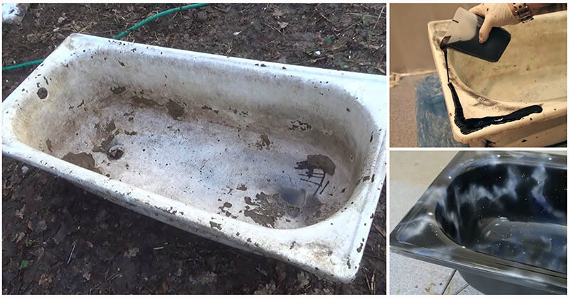 На многих дачах есть старая «убитая» ванна, которую давно не используют по прямому назначению. Однако в ней собирается мусор, замешивается бетон и т. п. Примечательно, что даже такую «убитую» ванну можно «привести в чувство» и дать ей вторую жизнь. Мастер решил отреставрировать старую ванну и сделать её пригодной для купания. Более того — он пошёл дальше и полностью поменял дизайн, сделав ванну фантастически красивой и необычной. Конечно, финальный вариант зависит полностью от вашего вкуса и может быть откорректирован. Вот так выглядела ванна в начале работы. Первым делом мастер вручную убрал все выступающие куски грязи, цемента и т. д. Затем зачистил металлической щёткой поверхность. Помыл ванну, насколько это было возможно сделать. И перед началом работ обезжирил поверхность растворителем (ацетоном). Главный момент в работе — заливка. Мастер подложил под низ ванны пакеты и стал заливать ванну жидким акрилом. Цвет может быть выбран тот, который вам больше нравится. Мастер решил сде