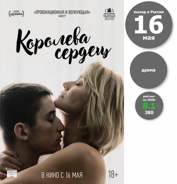Судя по всему, уже совсем скоро мы увидим очередной пример такого кинопроизведения, что не может не радовать. Хотя понятно, что Дания и Швеция, являющиеся странами-производителями фильма «Королева сердец», — это не Америка. Там нет Голливуда и масштабы всего, что касается кинопроизводства, гораздо скромнее. Однако это не отменяет того факта, что оттуда периодически появляется по-настоящему годная продукция. За примерами далеко ходить не надо — стоит вспомнить хотя бы такие фильмы, как «Девушка с татуировкой дракона», «Охота», «Догвилль», «Меланхолия», «Танцующая в темноте», «Рассекая волны» (Ларс фон Триер, если кто забыл, как раз является датчанином), «Слово», «Королевский роман», «Месть». Для особых эстетов можно упомянуть веселый взрослый полнометражный мультфильм «Ронал-варвар». Я не знаю, насколько новая кинолента поможет в карьере режиссеру Мэй эль-Тухи (которая до этого снимала только один полнометражный фильм, а начинала свою карьеру постановщика, как и многие другие, с короткометражек и сериалов), но на данный момент у «Королевы сердец» на IMDb даже не хороший, а отличный рейтинг — 8.1. Проголосовало при этом пока только 380 человек, что не очень много, но и не так уж мало. Фильм уже успели показать на кинофестивалях в США, Голландии, Швеции и Литве, а также в обычном прокатном режиме в Дании и в тех же Швеции и Голландии.