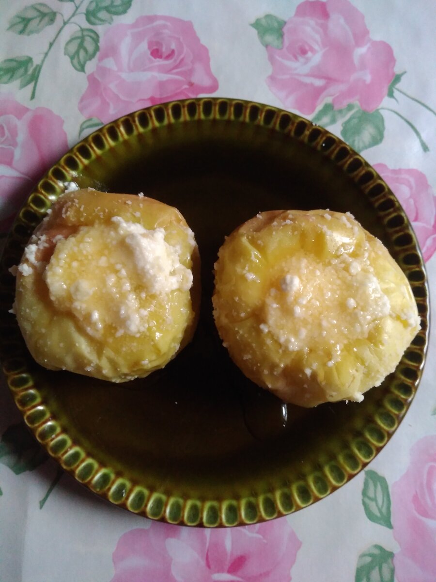 Для приготовления нужны только яблоки и творог. Я иногда добавляю изюм или сухофрукты. А уже готовые по желанию можно полить медом! Мммммм! Вкусно! И довольно сытно!