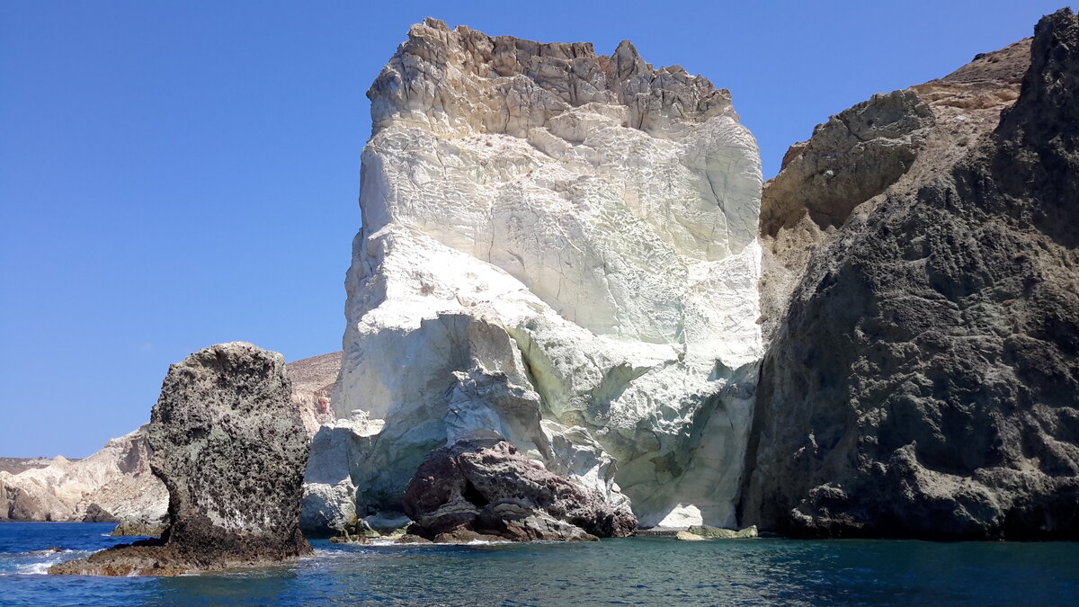 После того как Вы вышли из автобуса в Акротири, есть два варианта как добраться до Красного пляжа. Первый вариант- это просто пойти пешком направо (море получается у Вас с левой стороны) расстояние около километра с небольшим, времени в пути займет в районе двадцати минут. Ну если честно, я не вижу смысла использовать первый вариант, достаточно трудно туда дойти и опять же занимает лишнее время (которое у нас на Санторини на вес золота!). Я рекомендую второй вариант - направляетесь направо примерно 400 метров от автобусной остановки до таверны "The cave of Stolidas". Напротив таверны располагается небольшой причал. Ровно в 9-00 с него начинают ходить небольшие моторные лодки и возить туристов на красный, белый и черный пляжи. Стоимость билета в 2018 году составляла 10 евро на человека. В его стоимость включается посещение всех трех пляжей на Ваше усмотрение. Лодочки курсируют каждые полчаса и Вы можете высадится на любой пляж и вдоволь накупавшись, на любой из лодок вернуться о