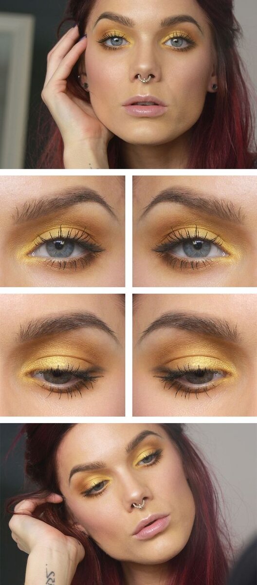 Яркие цвета в макияже, сойдя с подиумов модных показов и обложек глянцевых журналов, нашли свое применение в повседневной жизни и плотно вошли в списки трендов. Желтые тени в макияже глаз – один из них! Сейчас довольно сложно удивить кого-то ярким макияжем в повседневной жизни, но все же многие девушки все еще боятся вводить его в обиход. Надеемся, что после прочтения нашей статьи, ваши сомнения рассеются и вы будете готовы дать шанс новому образу! Кому подходит Широкая палитра оттенков позволит подобрать тени под любой цвет глаз, волос и кожи. Тем более, что желтый идет всем, как бы странно это не звучало: Особенно хорош макияж с желтыми тенями на загорелой коже. Он привносит нотку цитрусовой активности и беззаботности в образ, настраивая нас на солнечное настроение. В летнем макияже вы легко можете позволить себе даже неоновые тени или подводку! Макияж глаз с желтыми тенями ВАРИАНТ №1 Вы можете использовать желтые тени, как единственный и основной акцент в макияже. За счет совей ярко