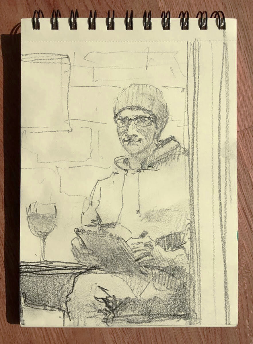 Решил приобщиться к манящему духу парижской богемы и сделал автопортрет в одном из кафе.