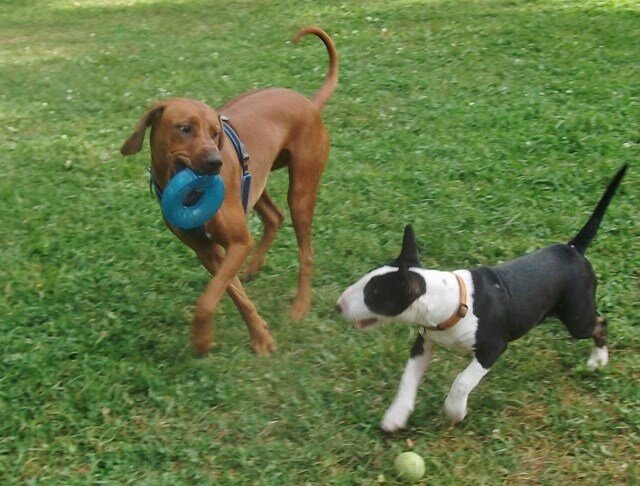 Словом, есть место, где можно собакам спокойно поиграть, ни в чем себе не отказывая. ...В тот день на полянке мы застали только девочку-бультерьера. Через какое-то время после совместных занятий фитнесом Золкина подружка устала и развалилась на травке. Сама же Золка только размялась и потребовала побросать ей мячик. Бегала-бегала за мячом и вдруг что-то привлекло ее у одного дерева. Копнула лапой раз-другой и давай копать, как крот. Раньше такого мы за ней не замечали, решили понаблюдать. Пока шутили насчет перспективы клада, образовалась приличная яма. Отдохнув, раскопками заинтересовалась и подруга. Золка делиться кладом была не намерена