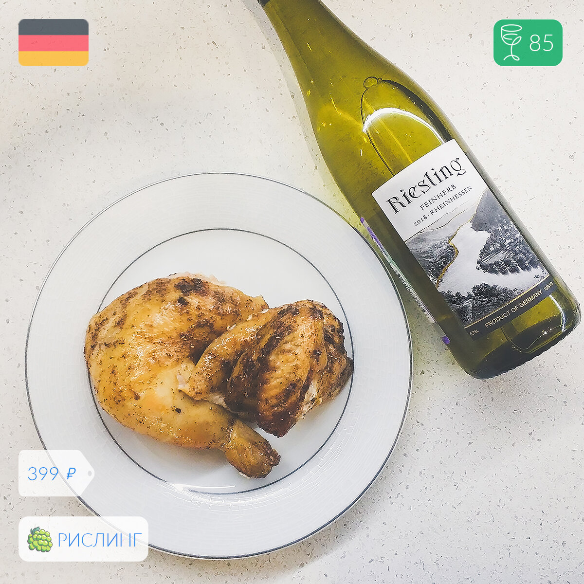 «Простое человеческое счастье» за 654 рубля на четверых! Вино — для удовольствия и эстетики, чистый гедонизм. Это парадигма номер раз! Вино — продукт на каждый день, такой же как жареная курочка на ужин — № 2 Сегодня мы предлагаем мигрировать в сторону второго, а заодно и перекусить. Riesling Feinherb Rheinhessen 2018 Еще у него есть кодовое название «Тот самый Рислинг из Пятерочки». Про вино. Вот такое, дешевое и простое, как три копейки. Рислинг, чёрт его дери. Неказистый, но Рислинг! Кислотный и полусухой, максимально свежий, с небольшой остаточной газацией, которая на 8-10 градусах пляшет и бьет чечетку, создавая вкусовой объем во рту. Тут он уже может посостязаться даже с Виньо Верде, но фруктовее и не такой аскорбиново-лимонный. Яблоки, спелая груша, лайм и даже маракуйя на фоне — все свеженькое, даже зелень кое-какая пробивается. Сильно нагревать не рекомендуем — становится плоским и скучным. Уже говорили про кислотность? Не бойтесь — кусается только в переохлажденном варианте.