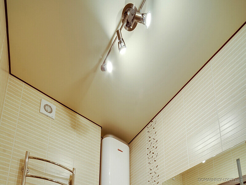 Ванная комната отличается повышенной влажностью, поэтому необходимо тщательно подбирать потолок именно в ванну. Из-за того что помещение, чаще всего, в ванной комнате небольшое, имеются большие сложности в креплении потолка. А из-за образования влажных пузырей на потолке стоит задуматься и о цвете потолка и о самом материале. Прорабы рекомендуют использовать либо подвесной ПВХ потолок, либо сатиновый натяжной потолок светлых тонов. Мы больше склоняемся к сатиновым натяжным потолкам, потому что их просто мыть, стоит протереть влажной тряпкой и не видно отеков от пузырьков воды. С ПВХ потолками в этом плане сложнее. А светлые тона рекомендуются потому что помещение кажется больше и светлее. Когда потолок темного цвета, в маленьком помещении, кажется что он на тебя в скором времени упадет. Таким образом ощущение дискомфорта не покидает. А из-за долгого времяпрепровождения в ванной комнате, хочется чувствовать себя комфортно в этой комнате. При необходимости замены, сатиновой натяжной п