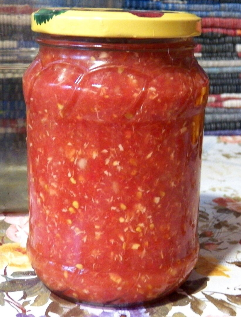 Хренодёр деревенский - лекарь вселенский! Как приготовить шикарную приправу под этим грубоватым названием? (которое нам навязали всякими словосочетаницами типо: "хрен с ним, на хрен, хрен его знает, хрен редьки не слаще" и прочие, чтобы отвадить от продукта, дающего долголетие!) " Готовить хреновину проще пареной репы... Ингредиенты: 1. Хрен огородный 2. Помидоры (лучше бычье сердце) 3. Чеснок (не китайский) 4. Соль (морская) Способ приготовления Намелем свежие спелые помидоры, добавим молотый чеснок и молотый хрен. Посолим. Размешаем. Разольём по банкам и закроем капроновыми крышками. Готово - ура! На 1 литр молотых томатов я кладу 2-5 столовых ложек хрена и столько же чеснока. Соли - примерно 1 столовая ложка, можно меньше - пробуйте: должно быть солёное, чтобы не забродило, но и не пересолить, конечно. Приятно поесть пельмешки, макая их в хренодёр. И к горячей вареной картошечке он подойдет и к мясу... В общем, на столе он будет не лишним и подойдет ко многим блюдам. А по