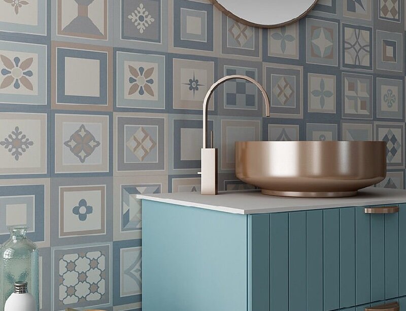 Создать уют в санузле довольно просто. Есть много традиционных вариантов. Но, если вас интересует уникальное оформление ванной плиткой, тогда вам обязательно нужно прочесть эту статью. Тут представлено 3 оригинальных решения. Используйте хоть одно такое оформление, и ваш санузел будет выглядеть роскошно и уютно. Стильное решение – плитка в стиле пэчворк Это один из последних трендов 2018–2019 годов. Оформление ванной плиткой с рисунком пэчворк будет беспроигрышным в интерьере. Название у рисунка специфическое, но многим знакомое. Пэчворк с английского означает шитье лоскутами. Укладка плитки с таким рисунком очень напоминает лоскутное одеяло, выполненное своими руками. Плитка пэчворк – это беспроигрышный вариант для разных стилей. Особенно уместна отделка в санузле в скандинавском стиле или в направлениях Прованс, кантри. Единственное, есть некоторые требования. Для скандинавского стиля оформление плиткой пэчворк должно быть выполнено в холодных тонах. Особенно интересно смотрится в се