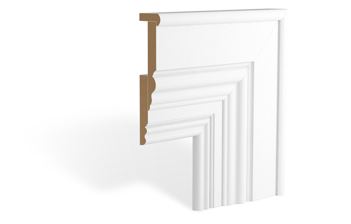 — планку вторично прикладываем к двери и выравниваем по нижней линии и краям. После этого переходим к замерам высоты и отрезаем 45-градусный угол; — повторяем аналогичные шаги с планкой, предназначенной для противоположной стороны двери. Верхнюю часть наличника подгоняем в