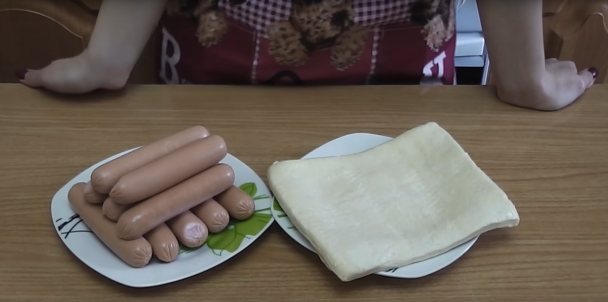 Добрый вечер дорогие друзья, рад приветствовать вас на канале "ЛЮБИТЕЛИ ВКУСА". Сегодня хочу поделится о том, как быстро и просто приготовить сосиски в тесте. Приступим! Для этого нужно готовое дрожжевое тесто и соски. Берём тесто и раскатываем скалкой, чтобы толщина получилась 3-4 миллиметра Далее режем тесто на полоски приблизительно по 4 сантиметра. Далее берём сосиски и заворачиваем их также, как и на фото: Выкладываем наши сосиски на противень, смазанный маслом. Обязательно чтобы они были на расстоянии друг от друга и покрываем их взбитым желтком. Так они получатся более румяные. Отправляем в духовку на 180 градусов на 20 минут. Друзья вот и готовы наши сосиски в тесте, посмотрите какие они получились румяные и очень аппетитные. Согласитесь быстро и очень сытно! Подписывайтесь на канал, ставьте палец вверх. До новых встреч :)
