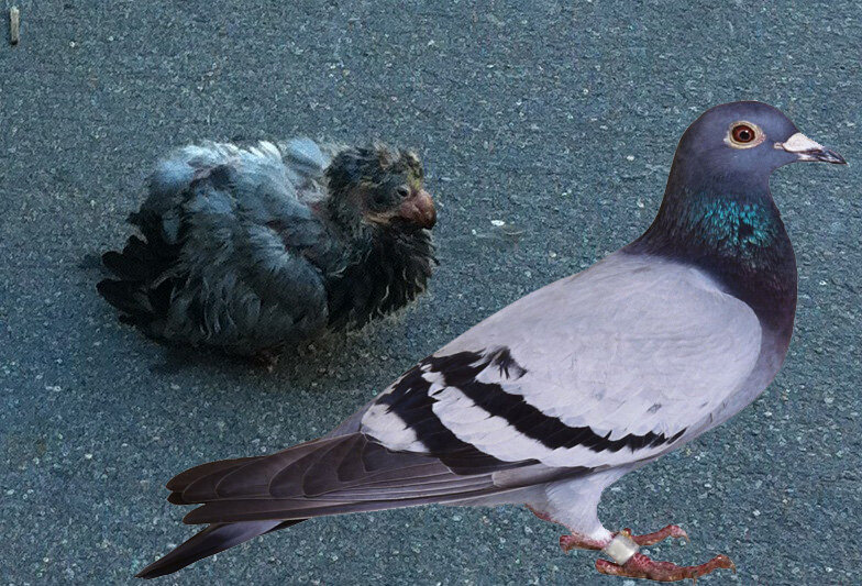 При всём разнообразии голубей, встретить на улице можно только взрослую особь. Всё потому, что птенцы достаточно долго находятся в гнезде и вырастают до размеров взрослого голубя.