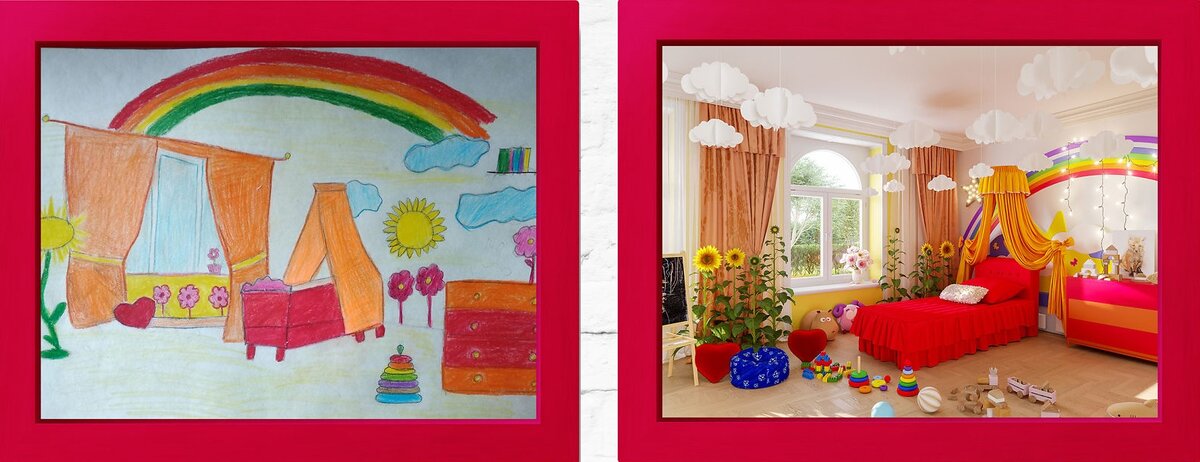 Что будет, если спросить у детей, как они видят свою комнату? У детей нет ещё таких встроенных ограничений в голове, как у нас — дорого, сложно, бессмысленно. Поэтому дизайн собственной комнаты для них дело понятное, а вот перевести его на язык реальности уже сложнее. Но студия NeoMam Studios всё же попыталась. 7 детей нарисовали комнату своей мечты и ответили на вопросы, а дизайнеры подготовили по результатам реалистичные рендеры. 1. Таинственный лес Семилетний греческий мальчик мечтает о комнате, где будут растения, дуб с белками и пруд с рыбами, кровать в форме листа с подушками в виде львиной головы, телевизор и компьютер. Результат: 2. Солнце и счастье Девятилетняя украинка Виола нарисовала комнату с облаками, солнцем и радугой. В дизайне ей нужно почувствовать "счастье, яркие цвета, тёплое солнце и летнее веселье". Результат: 3. Комната-паззл Пятилетняя Инайа из Пакистана любит цветы, траву и качаться на качелях. Ей нравится всё овальное. На стенах она хочет видеть паззлы и сч