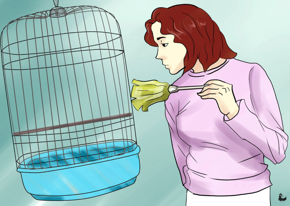 - Переместить питомца в другое помещение. Можно приобрести вторую клетку и еще один набор игрушек, чтобы попугайчик не скучал во время уборки.