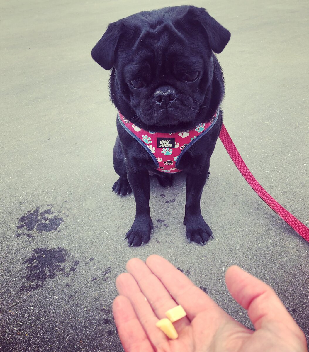 Сегодня научимся одной очень простой, но очень полезной команде - “Дзен”. Очень подойдет гиперактивным и легковозбудимым собаками, чтобы повысить концентрацию внимания, а также поучиться самоконтролю и умению отвлекаться от посторонних раздражителей. Поможет обучиться неподбору и выдержке в дальнейшем. Техника исполнения: На открытой ладони подносим к носу собаки кусочек вкусного лакомства, если собака делает попытки съесть лакомство, ничего не говорим - просто закрываем ладонь. Руку держим ровно, прямо и статично, не дергаем и не водим перед носом собаки. Пока собака пытается выедать или выковыривать лакомство - мы не разжимаем ладонь. Собака получит награду, когда хотя бы секунду будет смотреть на угощение, не пытаясь его стащить. Собака не должна сама брать кусочек - только по команде “да”! Как только собака поймет, что она должна сидеть и постоянно смотреть на лакомство, но не пытаться его съесть - вводим команду “Дзен”! Если собака отвлеклась от лакомства и смотрит в другую ст