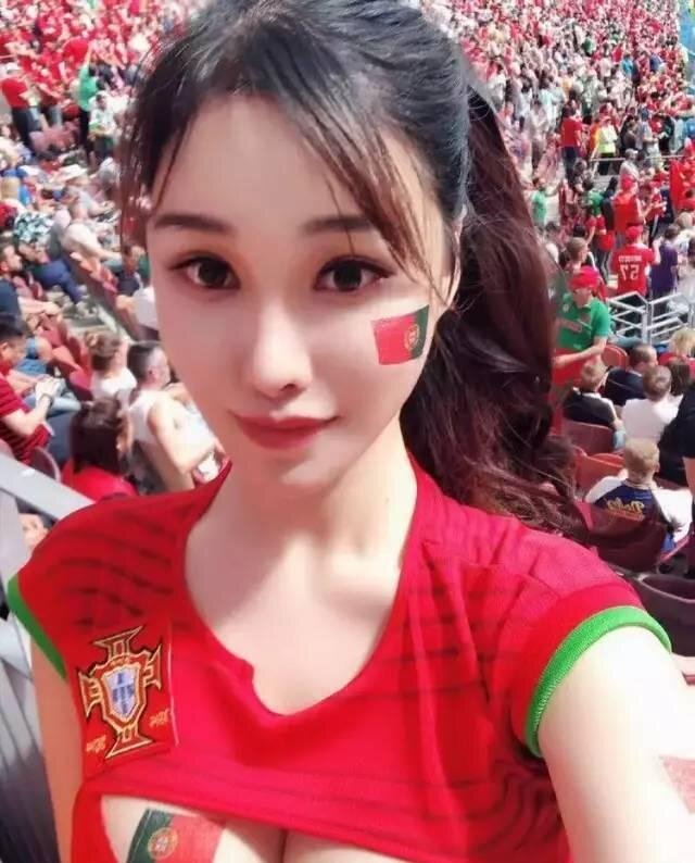 Футбольные баталии отгремели почти год назад, французы увезли домой заветный кубок, а волшебная нога Акинфеева увековечена в нескольких памятниках. Если вы интересуетесь футболом, то знаете, что у Китая не самая сильная национальная сборная, но зато именно китайцы были одними из самых массовых гостей на трибунах в России. Криштиану Роналду чрезвычайно популярен среди китайских любителей и любительниц футбола. Особенно приятно видеть на трибунах таких красавиц, как эта преданная болельщица сборной Португалии. В тот день команда Португалии встречалась с командой Марокко, встреча завершилась со счетом 1:0 в пользу команды с Пиренейского полуострова. Кстати, эта девушка - знаменитая китайская фотомодель, даже если вы этого не знаете, то вам, наверняка, нетрудно было об этом догадаться. Если вы следили за публикациями о чемпионате, то не раз видели рейтинги "самых красивых болельщиц". А на какое место вы бы поставили эту прекрасную представительницу Поднебесной?