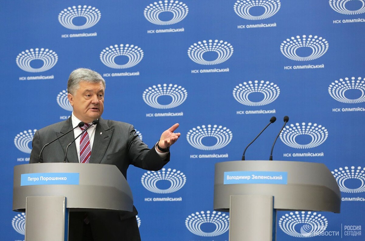 Ранее Порошенко заявил, что ждет своего оппонента Зеленского 14 апреля на стадионе "Олимпийский" в Киеве для проведения дебатов, он также пригласил зрителей и телеканалы. Зеленский, в свою очередь, заявил, что намерен провести дебаты с Порошенко 19 апреля. Порошенко, приехав на стадион в воскресенье, заявил, что ждет Зеленского до 15:00. Порошенко выразил сожаление по поводу того, что журналисты не смогли задать вопросы Зеленскому, а жители Украины не услышали ответы. Он призвал Зеленского прийти на эфир программы "Свобода слова" в понедельник вечером, а также 19 апреля на телеканал "Общественный". По его словам, Зеленский проявил неуважение не к президенту, который бы "сцепил зубы и стерпел", а к народу, к стране и избирателям. Порошенко также призвал Зеле