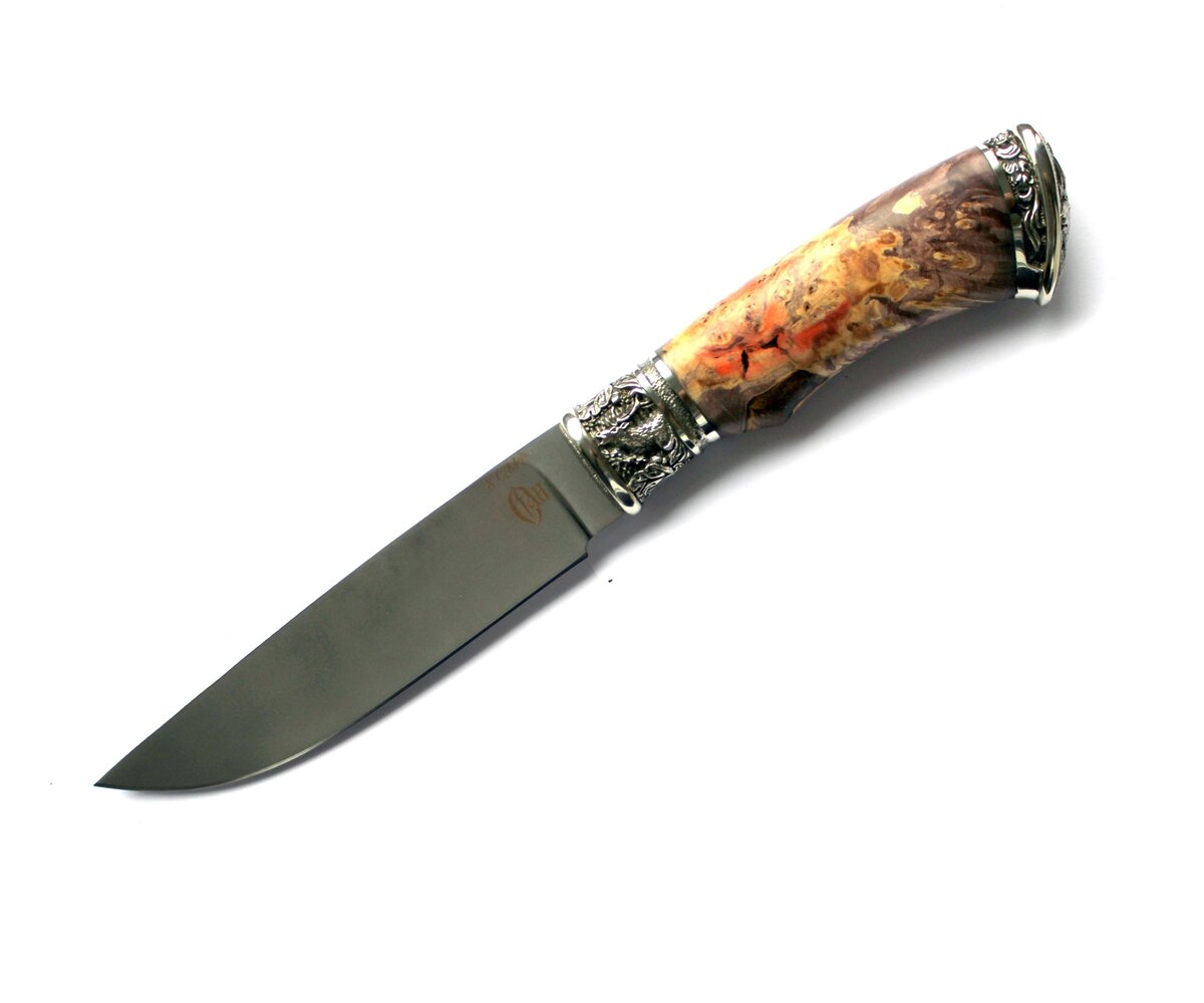Обзор ножа "Лесной" (сталь Х12МФ, стабилизированный кап клена, мельхиор)