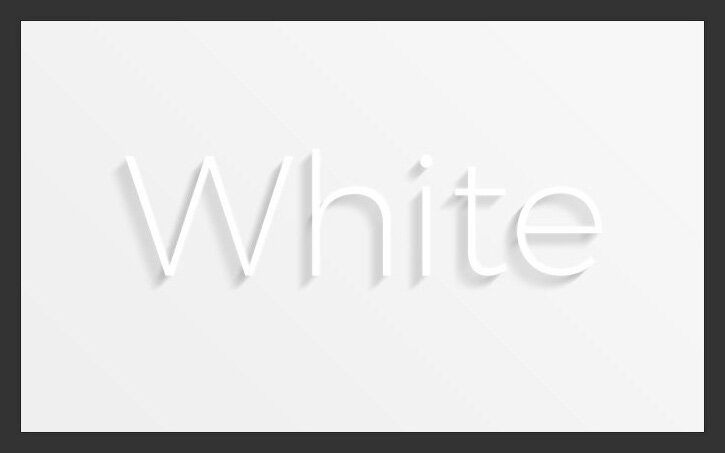 В этом уроке вы научитесь создавать длинные тени, использовать приёмы светотеневого рисунка, чтобы белый текст на белом фоне был не только видим, но читаем ( при условии, что текст достаточно большого размера). Шаг 1 Начните с создания нового документа в Photoshop, который составляет 1600 x 900 пикселей, 72 PPI и RGB Color с белым фоном. Шаг 2 Используя инструмент «Текст», создайте новый текстовый слой со словом White (Белый). Я использую бесплатный шрифт Montserrat размером 340 px. Если у вас нет этого шрифта и вы не хотите его искать и устанавливать, то вполне можно использовать похожий шрифт. Шаг 3 Щелкните правой кнопкой мыши по слою с текстом и «Преобразовать в смарт-объект». Шаг 4 Дважды щелкните по слою со смарт-объектом, чтобы вызвать окно с настройками стилей слоя. Используйте стиль слоя Наложение цвета (Color Overlay). Используйте белый цвет (#FFFFFF). Шаг 5 В результате наш текст стал невидимым. Чтобы это исправить, нужно добавить освещение и тень. Но сперва мы изменим цв
