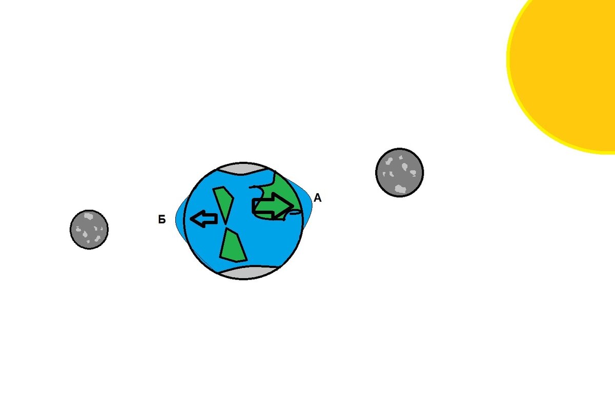 Как правило, объяснение приливных сил не верно, как на уроках физики, так и на просторах интернета. Почему тогда нет приливов в небольших озерах, реках, в ванне? Как в школе объясняют приливы: Объясняя эту картинку как-то так: притяжение в точке А сильнее, а в точке Б слабее, чем в центре Земли. Вроде объяснение правдоподобное, но оно не верно. Давайте договоримся что будем учитывать только закон всемирного тяготения Ньютона (гравитационный закон Ньютона) вспомним его: F - это гравитационное притяжение между материальными точками m1 и m2, разделенными расстоянием r, пропорциональна обеим массам и обратно пропорциональна квадрату расстояния между ними (так читается формула в рамке). Не будем учитывать объяснение гравитации Эйнштейна, не потому что Альберт Германович не смог бы объяснить гравитационные взаимодействия между Луной и Землей, просто искривление пространства-времени всё нам усложнит. Еще договоримся, что Солнце не будет участвовать в гравитационных взаимодействиях, т.к оно