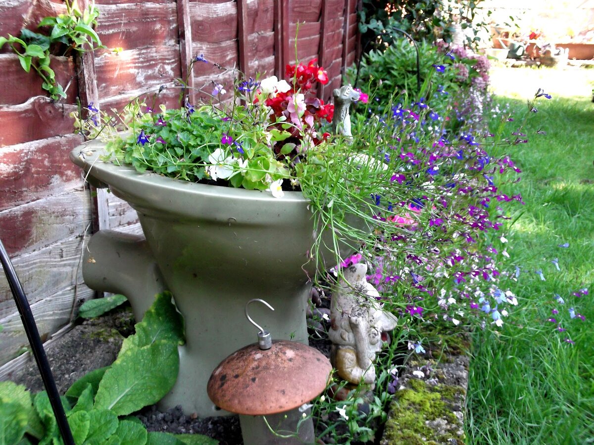 Унитазы! Вот оно, точнее, она, тема, которая меня занимала (не вдохновляла) давно, но я отодвигала её подальше. И забывала. До следующего раза, когда на просторах Интернета вновь попадалась фотография, где российские и, я подозреваю, не только российские обладатели загородных соток выкладывали свои ландшафтно-дизайнерские опусы. В виде клумб, основа которых - небезызвестный элемент сантехники. Унитаз в главной роли! Радует, что не во всех садах... Ну не понимаю я, что за блажь такая - сажать прекрасные цветы в старые унитазы. Вряд ли ведь для сих шедевров были приобретены новёхонькие фаянсовые или фарфоровые изделия?! Хотя кто знает... Вместо унитаза лучше бы что-то поинтереснее в саду поставили. Тех же гномиков, ёжиков, зайчиков, волка из мульта, который "Ну ты заходи, если чё"! Такие фигурки я недолюбливаю, по крайней мере, на моём участке их нет. Но если людям нравится, почему бы не оформить так сад, вполне мило порой получается, если фигурок не слишком много. И ведь была охота
