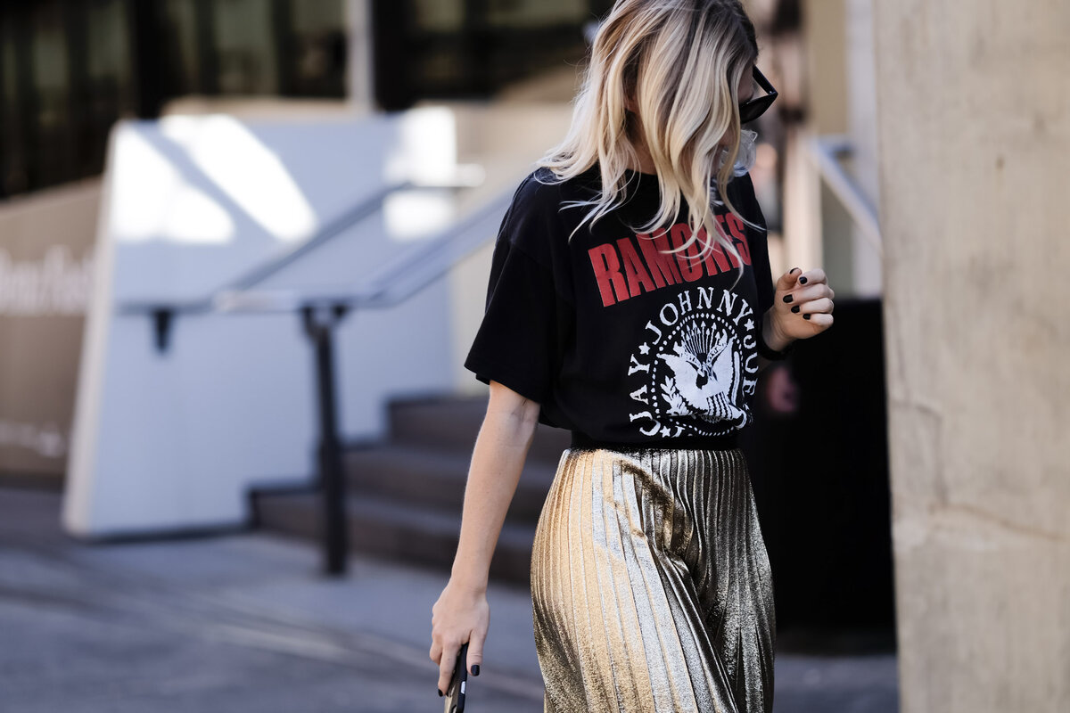 Рок-футболки стали хитом уличной моды, ведь они отлично вписываются в самые разные образы. Экземпляры, достойные стать украшением вашего гардероба, ищите среди мерча любимых групп, в шкафу папы-рокера, а также в самых разных брендах, от люкса до масс-маркета. Рокерская футболка может стать поводом для знакомства, главное – познакомиться с творчеством группы, название которой красуется на ней. А редактор Oskelly.ru расскажет, с чем надеть актуальнейшую вещь текущего сезона.