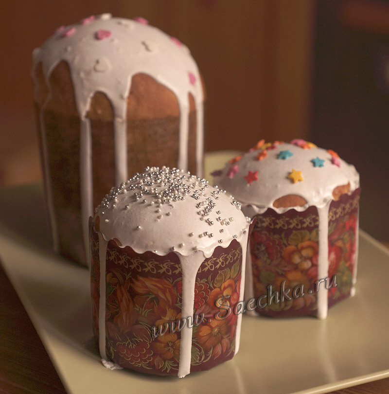 Пышный заварной кулич приготовлен на сливках, а сверху покрыт белковой глазурью. Ингредиенты: Как приготовить: