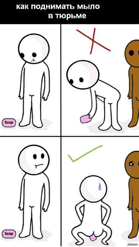 Бытует мнения, что если уронить мыло в тюрьме, то сзади может пристроиться зек). Сегодня, наконец, я открою волнующий занавес скрывающий истину)) Если уронить мыло в тюрьме, то произойдет ровным счётом ничего! Да-да, это тюремная байка появилась на малолетках и дальше развивалась самостоятельно в анекдотах и историях про лагеря. К настоящей жизни она ничего не имеет. Самое интересное, что эта байка появилась даже не в России) Так что народ не верьте всему, что пишут о странных традициях тюрем.